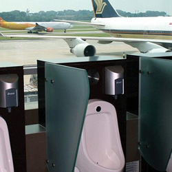 新加坡樟宜機場的T3航站樓旁,在噓噓的時候你可以看著空客A380,不知覺的劃出完美的拋物線。